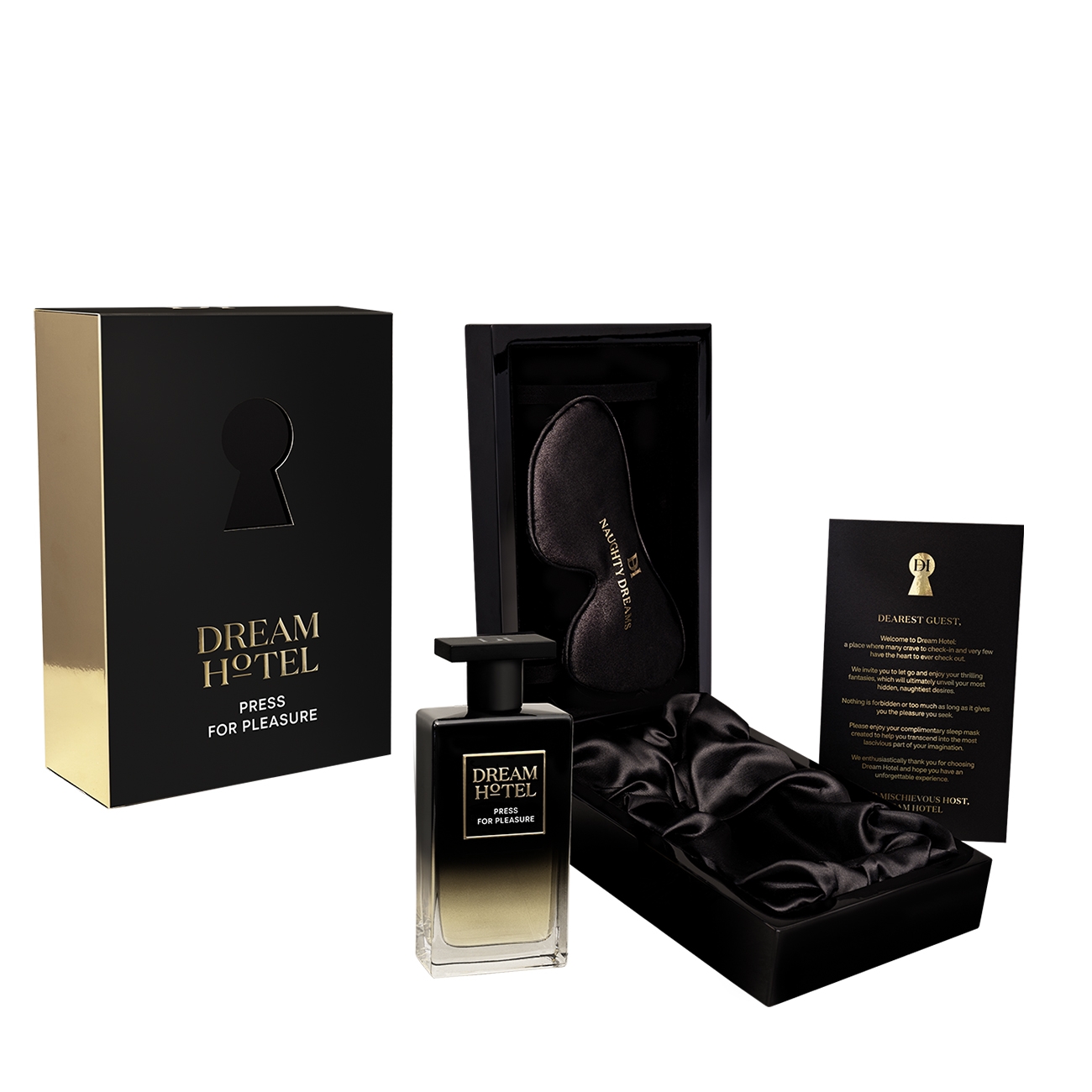 Bine-ai venit la Dream Hotel. O destinație intrigantă, un hotel imaginar de lux, lipsit de inhibiții, unde cele mai ascunse fantezii și dorințe devin realitate. Imaginează-ți dorințe interzise, trăiește-le cu pasiune, până nu mai rămâne nimic. Notele efervescente de mandarină se îmbină ușor cu tutunul nuanțat și lemnul de santal. Jocul devine tot mai amețitor. Cu Press for pleasure tu ești în control. De ce ai mai vrea să te întorci la realitate când totul e posibil cu Dream Hotel? Descoperă colecția de parfumuri hipnotice pe care le vei găsi doar aici: Ring my bell, Check me out, Love in the elevator, Swing my room și Press for pleasure.