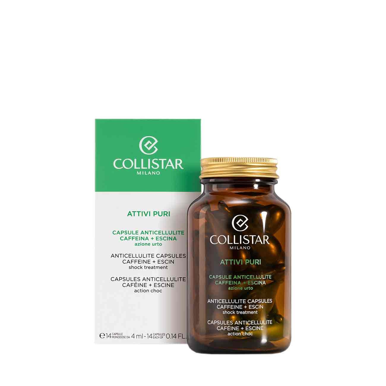 Collistar s-a angajat întotdeauna să creeze soluții de frumusețe pure și simple: oferind pielii exact ceea ce îi trebuie în doar câteva picături, combinând eficacitatea optimă cu o toleranță remarcabilă. Grijă și atenție la detalii, selectarea celor mai bune ingrediente și maximizarea principiilor lor au fost întotdeauna angajamentul lor zilnic. Collistar a adus o nouă dimensiune în cercetarea dermo-cosmetică cu un tratament special pentru corp, dedicat combaterii imperfecțiunilor cauzate de celulită. Această inovație combină cele două ingrediente active anticelulită cele mai eficiente, cafeina și escina, în capsule monodoză de gelatină. Cafeina este unoscută pentru proprietățile sale de ardere a grăsimilor, contribuind la reducerea depozitelor de grăsime subcutanate și la îmbunătățirea aspectului pielii. Escina, cu capacități de drenare, ajută la reducerea retentiei de apa, ameliorând astfel aspectul pielii și combatând celulita.