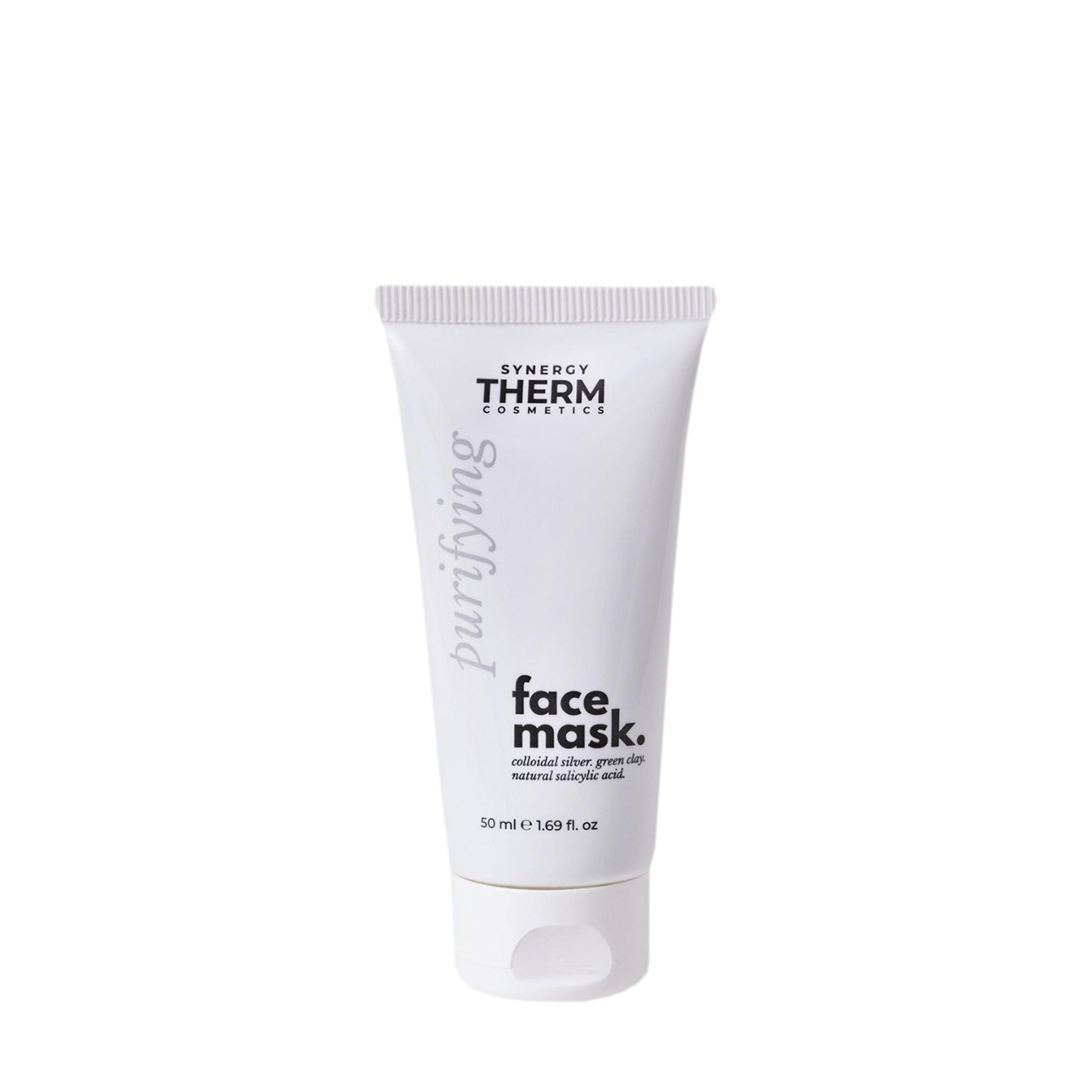 Synergy Therm Cosmetics este o gamă de produse dermato-cosmetice special formulate pentru a oferi îngrijire avansată pielii, având la bază apă termală de calitate superioară. Fiecare produs din această linie este creat cu o combinație unică de ingrediente active, atent selecționate pentru a adresa diverse nevoi ale pielii. Purifying Face Mask este masca de față ideală pentru tenul problematic, care necesită o curățare profundă și o gestionare a excesului de sebum. Formulată cu acid salicilic, argilă verde și argint coloidal, această mască decongestionantă lucrează eficient pentru a curăța porii și a regenera pielea, oferind un ten mai curat și mai matifiat. Acidul Salicilic pătrunde adânc în pori, ajutând la îndepărtarea impurităților și prevenind apariția coșurilor și a punctelor negre. Mască matifiază și reglează producția de sebum, lăsând pielea curată și fără luciu, iar argila verde absoarbe excesul de sebum și îmbunătățește textura pielii.