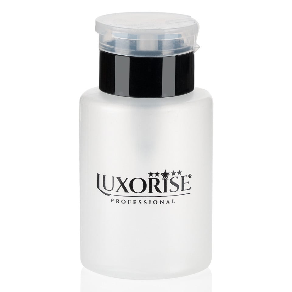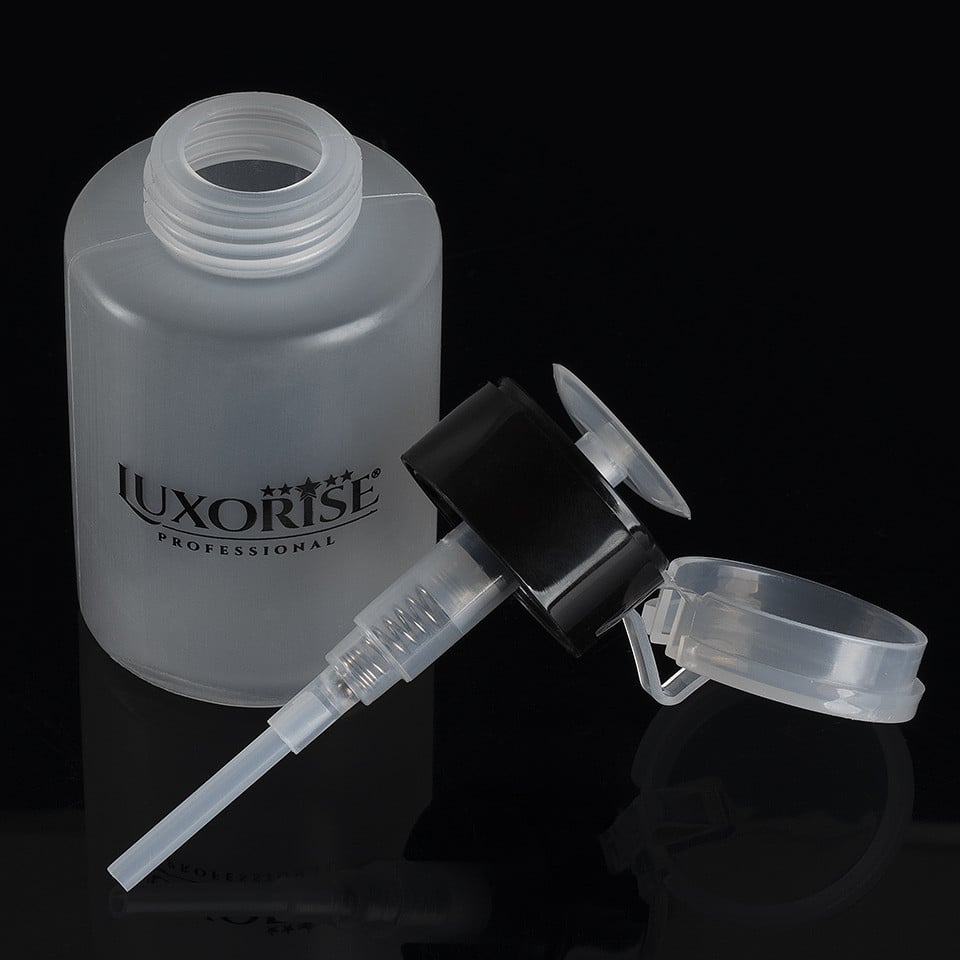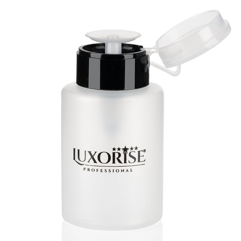 Recipient cu Pompita pentru Lichide Adjuvante Unghii LUXORISE, 250 ml poate fi folosit pentru pastrarea lichidelor adjuvante in procesul de realizare a oricarui tip de manichiuri. In acesta poti depozita cleanser unghii, acetona si remover. Recipientul cu pompita este foarte practic datorita pompitei ce necesita o singura apasare usoara pentru ca lichidul sa imbibe servetelul de unghii. Capacitate: 250 ml