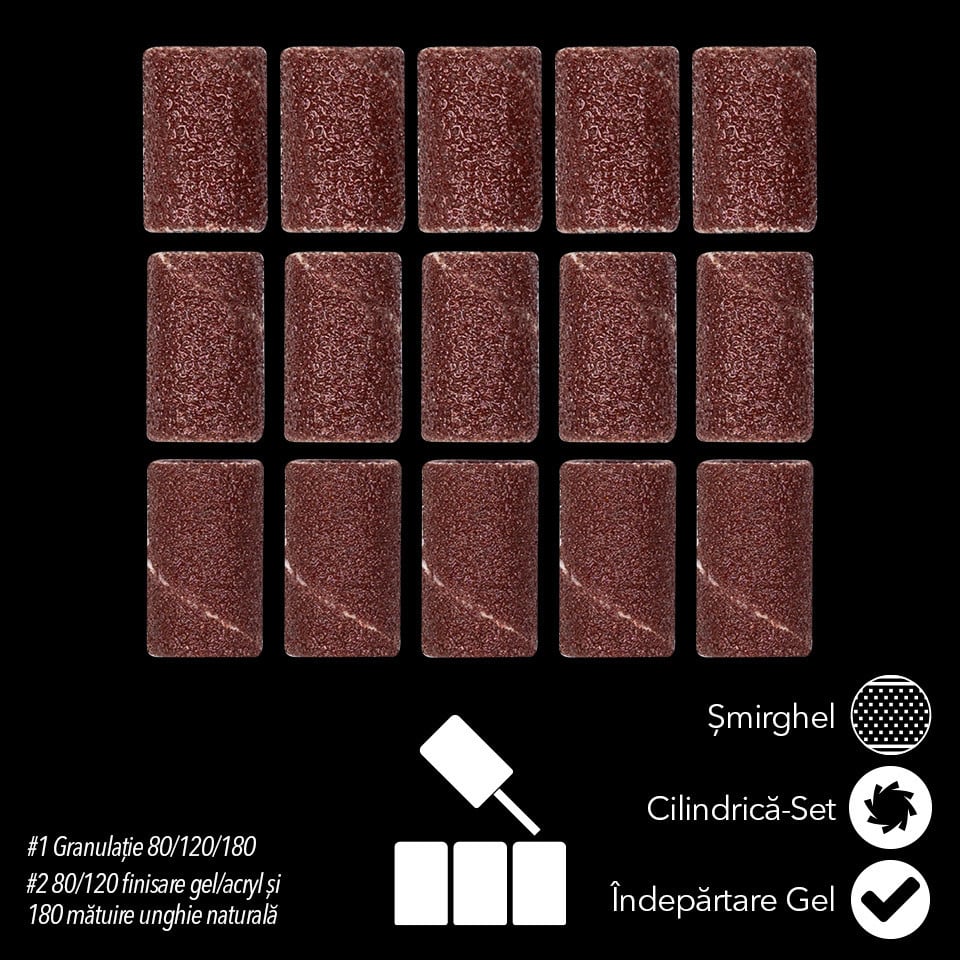 Rezerve smirghel pentru pila electrica SensoPRO Milano sunt potrivite pentru pilirea, lustruirea si finisarea manichiurilor. Astfel, i nelele abrazive se pot folosi la manichiura cu acryl, gel UV, oja semipermanenta, pe tipsuri sau unghii naturale. Aceste capete smirghel au granulatii diferite # 80/ #120/ #180 , ceea ce va ajuta la realizarea unor manichiuri / pedichiuri complete. C apetele usor abrazive se folosesc la finisarea manichiurilor, pe cand cele foarte abrazive la indepartarea gelului, acrylului sau polygelului. Setul de rezerve smirghel pentru pila electrica SensoPRO Milano contine 15 bucati.