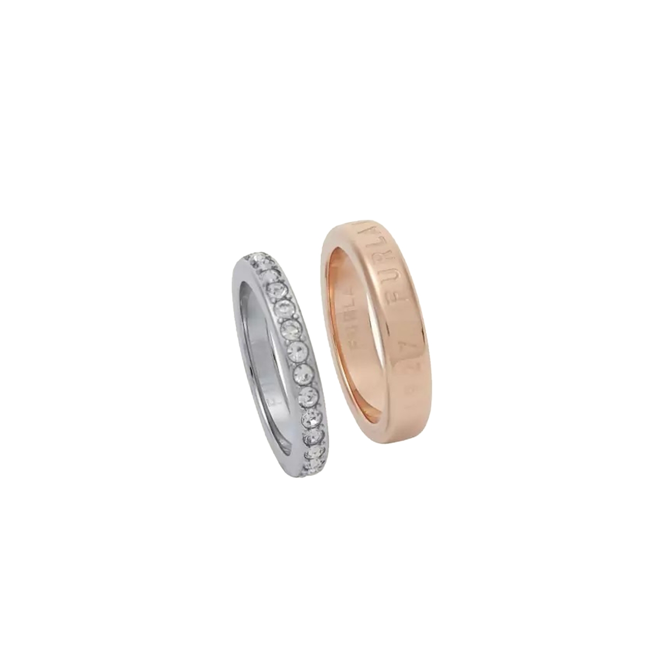 Furla spune povestea unui vis. Încă din 1927 Furla creează genți, portofele, pantofi și mici accesorii din piele atât pentru femei, cât și pentru bărbați. Stilul italian este întipărit în ADN-ul companiei și se regăsește în fiecare detaliu de la materiale la culori. Setul Furla 1927 include două inele de grosimi diferite, fiecare cu un design elegant. Cel mai subțire este decorat cu mici cristale strălucitoare, adăugând o notă de rafinament, iar cel mai gros este gravat cu inscripții distinctive, pentru un contrast subtil. Aceste inele pot fi asortate perfect cu alte bijuterii din aceeași linie, creând un look sofisticat și armonios.