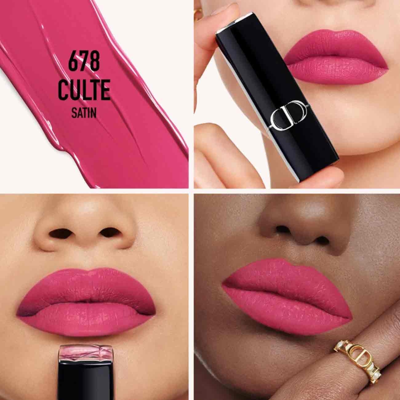 Rouge Dior, iconul machiajului Dior, se prezintă acum într-un nou ambalaj cu o frumusețe magnetică și un design contemporan. Textura cremoasă a rujului conferă buzelor o senzație de confort, iar finisajul satinat creează buze luminoase și bine conturate. Formula este îmbogățită cu un complex floral ce oferă îngrijire buzelor, asigurându-le suplețe și hidratare.