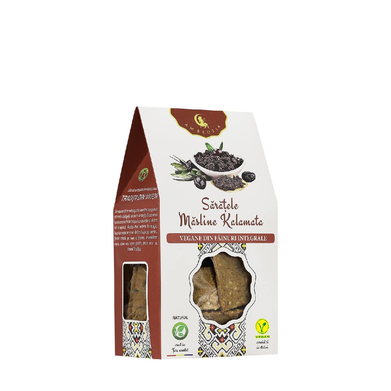 Din 2014 creăm produse bazate integral pe ingrediente naturale, accesibile fiecărui om preocupat de sănătate, deschizând astfel orizontul posibilităților de a trăi nu doar mult, ci și bine. Intenționăm prin ineditul combinațiilor să satisfacem atât nevoia de bun și plăcut la gust, cât și nevoia de „etichetă curată”. Descoperă aceste delicioase sărățele populare cu gust intens de sărățele de măsline kalamata. Un produs vegan fără adaos de zahăr, conținând doar zaharuri prezente în mod natural în ingrediente.