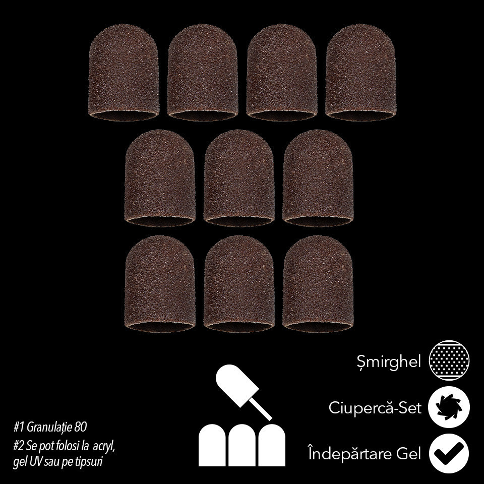 Set 10 Rezerve Smirghel pentru Capat Maxi PRO Granulatie #80, LUXORISE sunt potrivite pentru pregatirea rapida a unghiilor, pilire colturi, sculptare si realizare forma unghii. Pot fi folosite la pedichiuri si manichiuri naturale si tehnice cu oja semipermanenta, acryl, gel sau polygel. Duritate 80, indica faptul ca acestea au o granulatie mica si o suprafata foarte abraziva. Compatibile cu Capat Freza LUXORISE Maxi PRO.