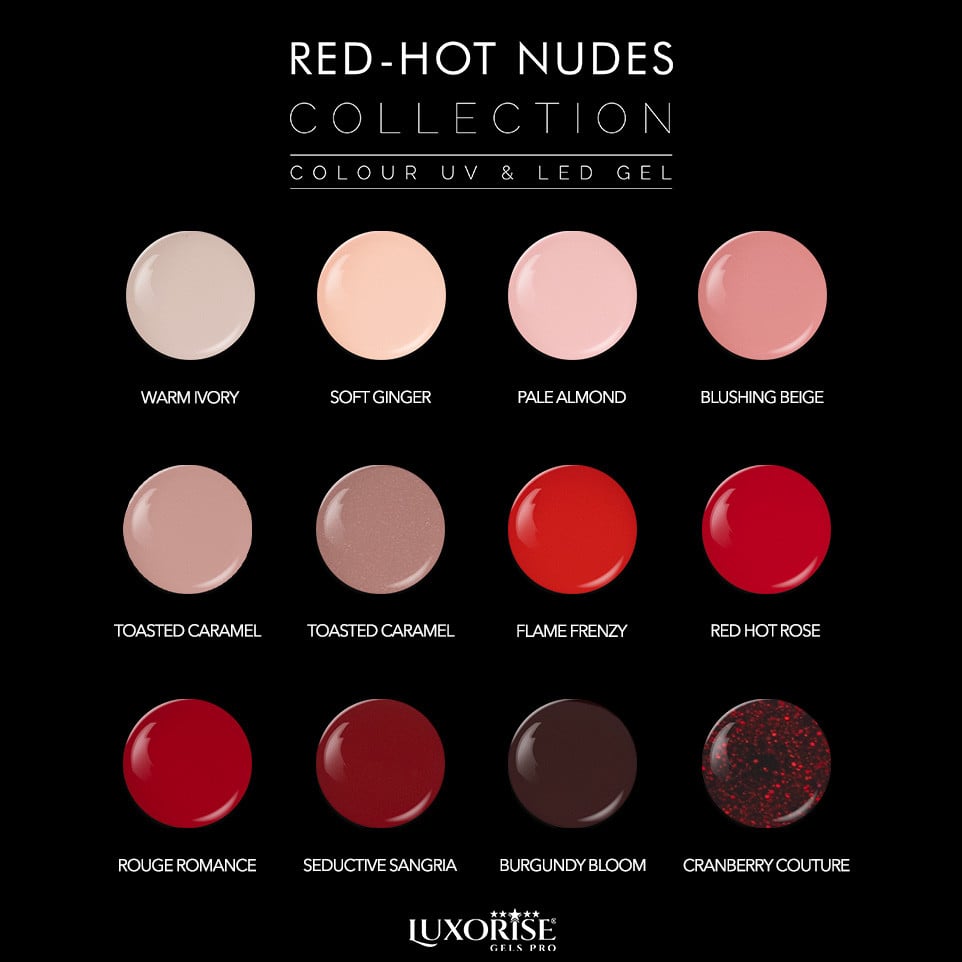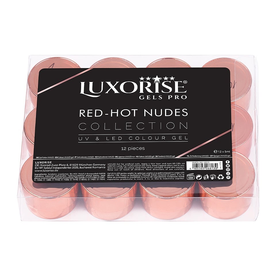 Set 12 Geluri UV Colorate LUXORISE, Red-Hot Nudes, Geluri UV