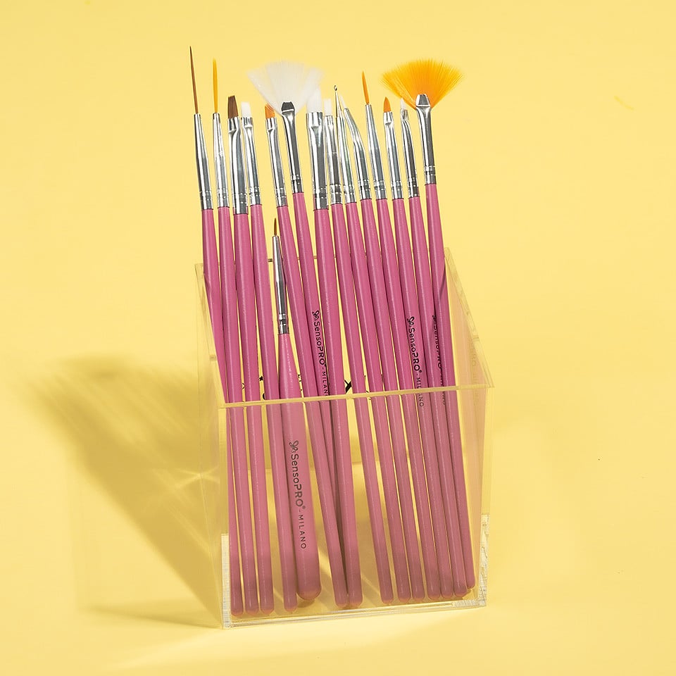 Set 15 Pensule Manichiura SensoPRO Milano, Soft Pink iti propune varfuri de marimi si forme diferite pentru constructia si decorarea unghiilor false . Se pot folosi si la realizarea diverselor modele cu vopsele acrilice. Se recomanda curatarea pensulelor dupa fiecare utilizare. Setul Soft Pink contine instrumente de calitate pentru trasarea liniilor de nail art cu precizie, pentru constructia unghiilor tehnice cu gel si pentru aplicarea glitterului sau a altor pulberi fine. Lungimile diferite, varfurile ascutite, drepte, in unghi sau rotunjite, modelele plate sau rotunde acopera toate tipurile de lucrari pe care o manichiura profesionala le cere. Alege Set 15 Pensule Manichiura SensoPRO Milano, Soft Pink si te vei bucura de o colectie completa de instrumente calitative de constructie si decorare unghii tehnice! Atentie! Suportul de pensule din poza secundara are rol de prezentare si se achizitoneaza separat!