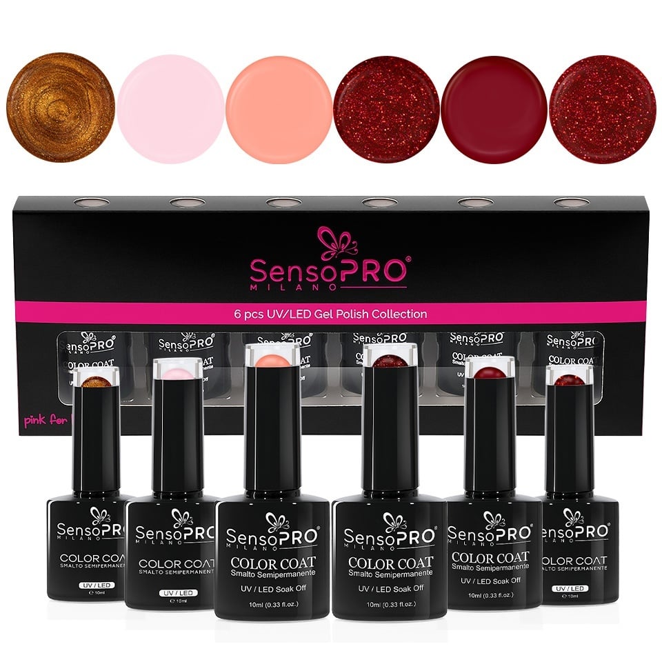 Set 6 Oje Semipermanente 10ml SensoPRO Milano, Cherry Cherry Lady, Kit Unghii