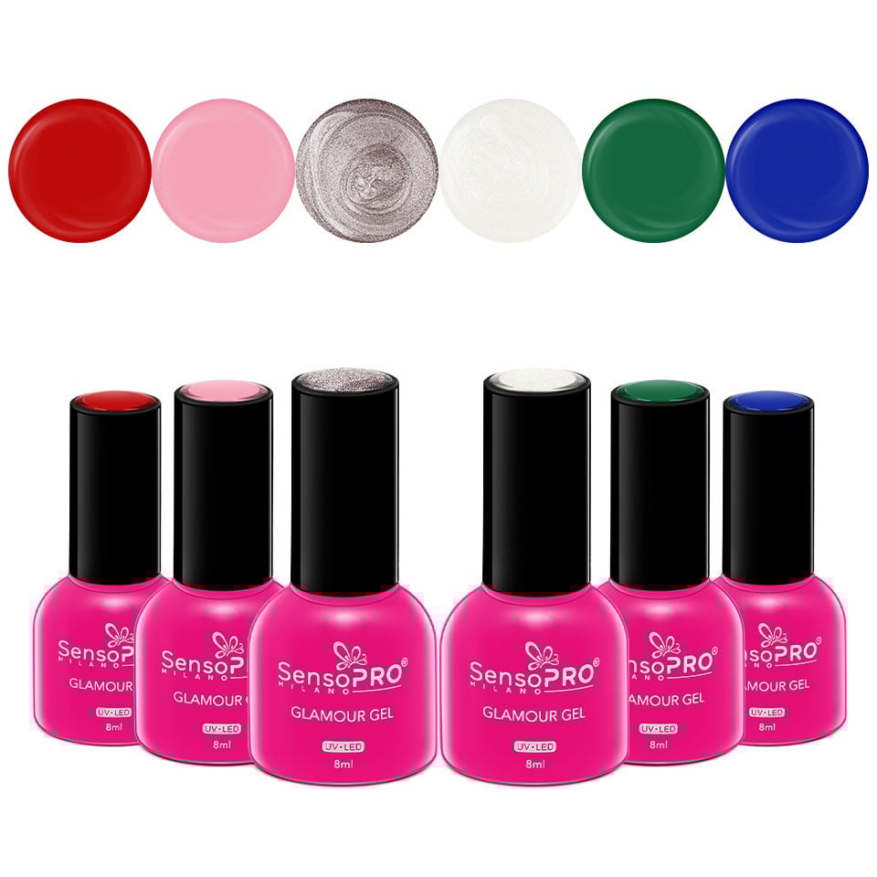Set 6 Oje Semipermanente Glamour 8ml SensoPRO Milano, Christmas Fever, Kit Unghii