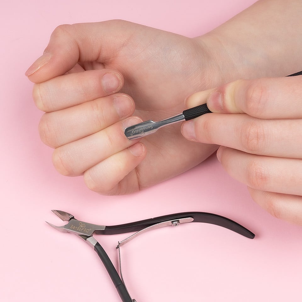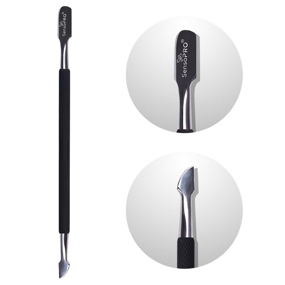 Set Manichiura / Pedichiura Cleste Unghii si Instrument Cuticule SensoPRO Milano, Black din otel inoxidabil este perfect pentru procesul de pregatire a unghiilor. Instrumentul are doua capete de lucru: unul rotunjit, pentru impingerea cuticulelor si unul pentru zonele sensibile si mai putin accesibile ale unghiei. Clestele, cu maner egonomic si lame subtiri si perfect curbate taie cu precizie unghiile / colturile si stilizeaza cuticulele. Avantaje: Otel inoxidabil calitate superioara Multifunctional - impingere & stilizare cuticule, taiere colturi Performanta ridicata Usor de curatat / dezinfectat