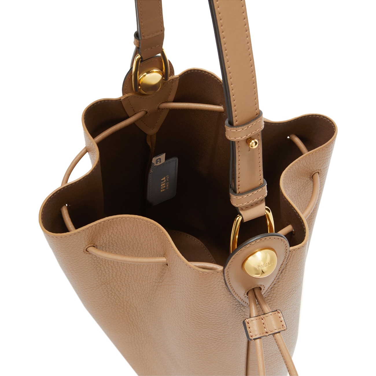 Geanta Furla Sfera Bucket, realizată din piele de vițel de înaltă calitate în nuanță intensă, îmbină eleganța clasică cu un design practic și modern. Sistemul de închidere tip șnur conferă un aspect relaxat, iar detaliile metalice aurii adaugă o notă sofisticată.