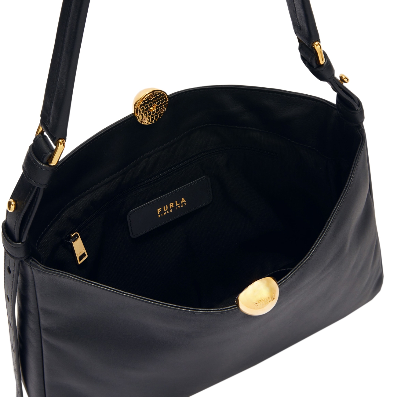 Furla spune povestea unui vis. Încă din 1927 Furla creează genți, portofele, pantofi și mici accesorii din piele atât pentru femei, cât și pentru bărbați. Stilul italian este întipărit în ADN-ul companiei și se regăsește în fiecare detaliu de la materiale la culori. Geanta Sfera Soft, cu un design contemporan și linii fine, prezintă o formă destructurată și un volum compact, ideală pentru a fi purtată pe umăr. Realizată din piele nappa moale și capitonată, geanta se închide cu o clapetă magnetică, creând un efect de drapaj natural, și este completată de accesoriul rotund Sfera, adăugând o notă de eleganță discretă.