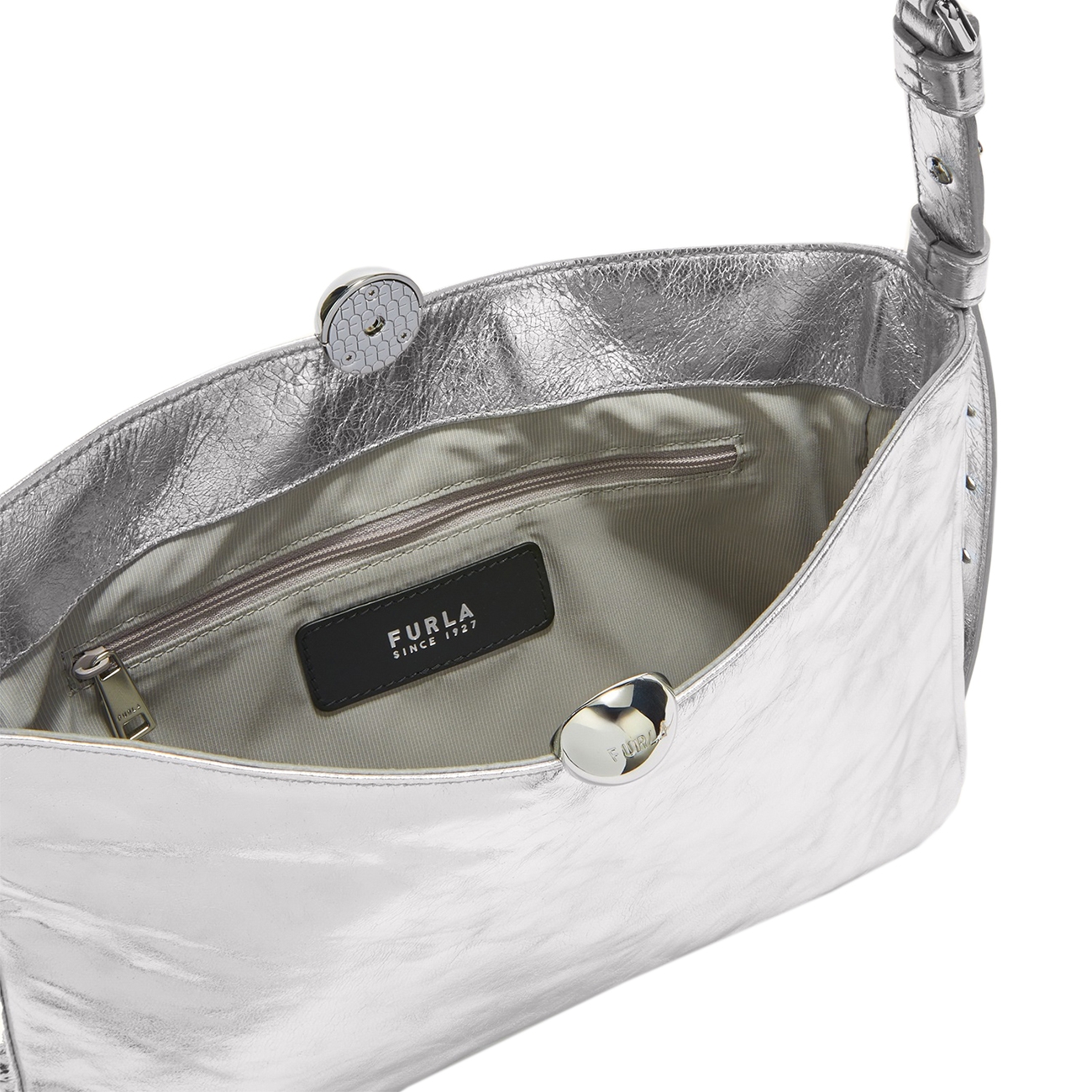 Furla spune povestea unui vis. Încă din 1927 Furla creează genți, portofele, pantofi și mici accesorii din piele atât pentru femei, cât și pentru bărbați. Stilul italian este întipărit în ADN-ul companiei și se regăsește în fiecare detaliu de la materiale la culori. Noua geantă Sfera Soft impresionează prin silueta sa minimalistă și liniile curate, reflectând o estetică modernă și sofisticată. Realizată din napa metalizată moale, cu un efect craquelé luminos, această geantă creează o textură șifonată subtilă, adăugând un plus de rafinament oricărui outfit. Forma ergonomică urmărește armonios curbura brațului, asigurând confort maxim la purtare.