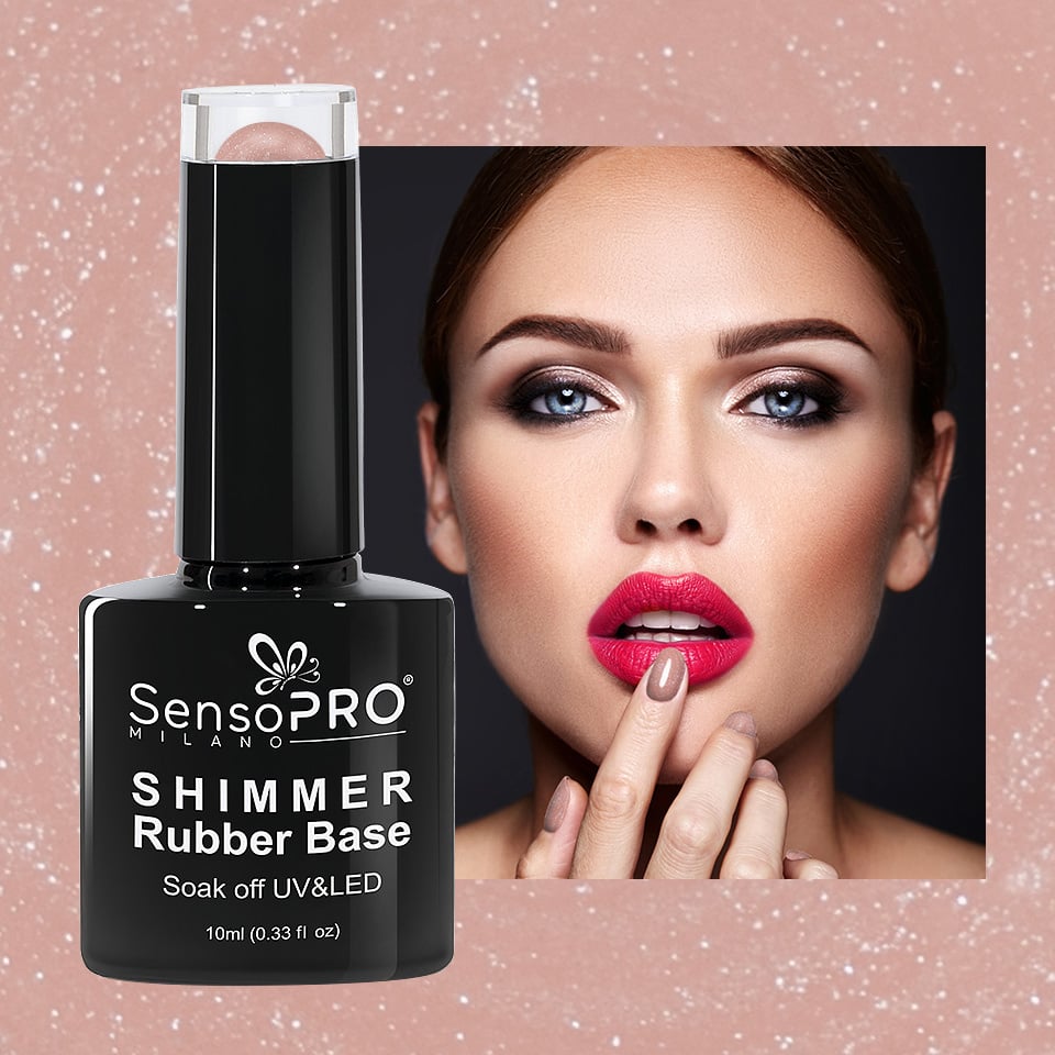 Lasa-te cucerita de cele mai fine si elegante particule de sclipici! Shimmer Rubber Base SensoPRO Milano - #11 Irresistible Nude Shimmer Silver, 10ml este o baza colorata, flexibila, cu o densitate ridicata ce intareste unghiile si asigura o acoperire perfecta pentru unghiile denivelate sau patate. In acelasi timp, mareste rezistenta ojei semipermanente sau gelului UV pe unghie cu pana la 6 saptamani. Fiind o baza flexibila, apexul unghiei poate fi realizat foarte usor. Apexul are rol estetic - unghii lungi si subtiri dar si practic, marind rezistenta unghiei. Shimmer Rubber Base Irresistible Nude contine particule fine de sclipici argintiu si este potrivita ca si baza, dar si ca produs individual pentru manichiuri nude sau french. Mod de utilizare: 1. Curatati unghia naturala si matuiti-o cu pila buffer 2. Aplicati un strat de primer 3. Aplicati Rubber Base Gel si uscati 2 min in lampa UV sau 30 secunde in lampa LED. Daca este necesar, aplicati si un al doilea strat de Rubber Base Gel. In acest pas, puteti forma apexul unghiei. 4. Aplicati oja semipermanenta / gel UV si uscati la lampa. Pentru un efect mai intens, aplicati al doilea strat de oja si uscati. 5. Aplicati Top Coat si uscati din nou 2 min la lampa UV sau 30 secunde la lampa LED. Avantaje: - Flexibilitate mare - Aderenta perfecta - Autonivelant - Mareste rezistenta ojei semipermanente si a gelului UV - Recomandat pentru unghii subtiri, denivelate, patate