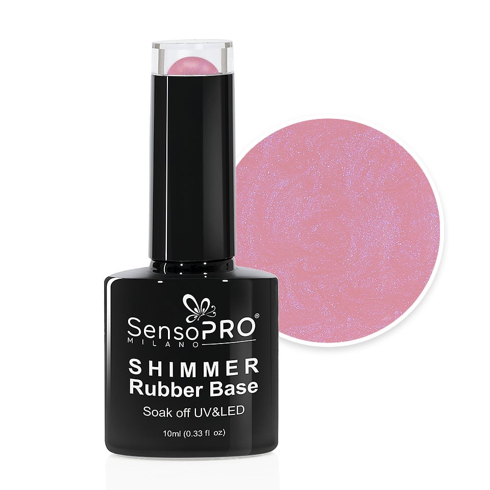 Lasa-te cucerita de cele mai fine si elegante particule de sclipici! Shimmer Rubber Base SensoPRO Milano - #14 Musical Rose Shimmer Blue, 10ml este o baza colorata, flexibila, cu o densitate ridicata ce intareste unghiile si asigura o acoperire perfecta pentru unghiile denivelate sau patate. In acelasi timp, mareste rezistenta ojei semipermanente sau gelului UV pe unghie cu pana la 6 saptamani. Fiind o baza flexibila, apexul unghiei poate fi realizat foarte usor. Apexul are rol estetic - unghii lungi si subtiri dar si practic, marind rezistenta unghiei. Shimmer Rubber Base Musical Rose contine particule fine de sclipici cu tenta de albastru si este potrivita ca si baza, dar si ca produs individual pentru manichiuri nude sau french. Mod de utilizare: 1. Curatati unghia naturala si matuiti-o cu pila buffer 2. Aplicati un strat de primer 3. Aplicati Rubber Base Gel si uscati 2 min in lampa UV sau 30 secunde in lampa LED. Daca este necesar, aplicati si un al doilea strat de Rubber Base Gel. In acest pas, puteti forma apexul unghiei. 4. Aplicati oja semipermanenta / gel UV si uscati la lampa. Pentru un efect mai intens, aplicati al doilea strat de oja si uscati. 5. Aplicati Top Coat si uscati din nou 2 min la lampa UV sau 30 secunde la lampa LED. Avantaje: - Flexibilitate mare - Aderenta perfecta - Autonivelant - Mareste rezistenta ojei semipermanente si a gelului UV - Recomandat pentru unghii subtiri, denivelate, patate