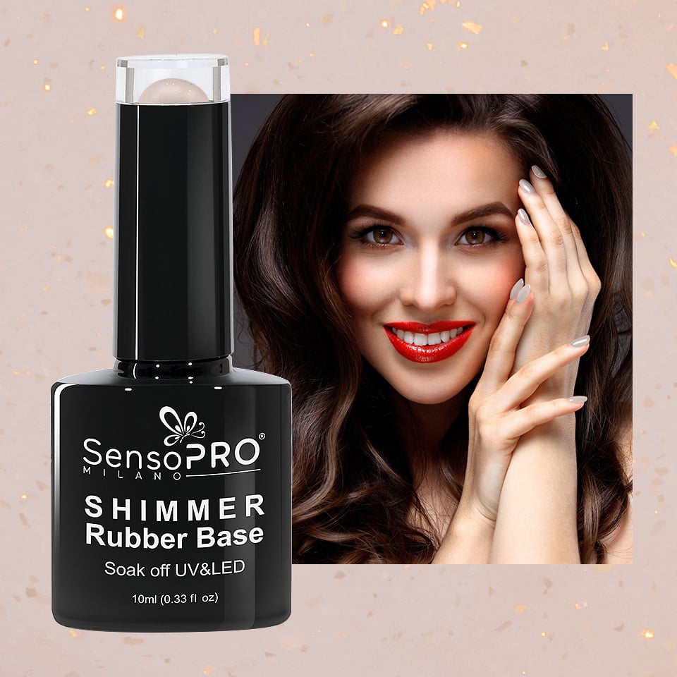 Lasa-te cucerita de cele mai fine si elegante particule de sclipici! Shimmer Rubber Base SensoPRO Milano - #25 French Vanille, 10ml este o baza colorata, flexibila, cu o densitate ridicata ce intareste unghiile si asigura o acoperire perfecta pentru unghiile denivelate sau patate. In acelasi timp, mareste rezistenta ojei semipermanente sau gelului UV pe unghie cu pana la 6 saptamani. Fiind o baza flexibila, apexul unghiei poate fi realizat foarte usor. Apexul are rol estetic - unghii lungi si subtiri dar si practic, marind rezistenta unghiei. Shimmer Rubber Base SensoPRO Milano - #25 French Vanille, 10ml contine particule de sclipici si este potrivita ca si baza, dar si ca produs individual pentru manichiuri nude sau french. Mod de utilizare: 1. Curatati unghia naturala si matuiti-o cu pila buffer 2. Aplicati un strat de primer 3. Aplicati Rubber Base Gel si uscati 2 min in lampa UV sau 30 secunde in lampa LED. Daca este necesar, aplicati si un al doilea strat de Rubber Base Gel. In acest pas, puteti forma apexul unghiei. 4. Aplicati oja semipermanenta / gel UV si uscati la lampa. Pentru un efect mai intens, aplicati al doilea strat de oja si uscati. 5. Aplicati Top Coat si uscati din nou 2 min la lampa UV sau 30 secunde la lampa LED. Avantaje: - Flexibilitate mare - Aderenta perfecta - Autonivelant - Mareste rezistenta ojei semipermanente si a gelului UV - Recomandat pentru unghii subtiri, denivelate, patate