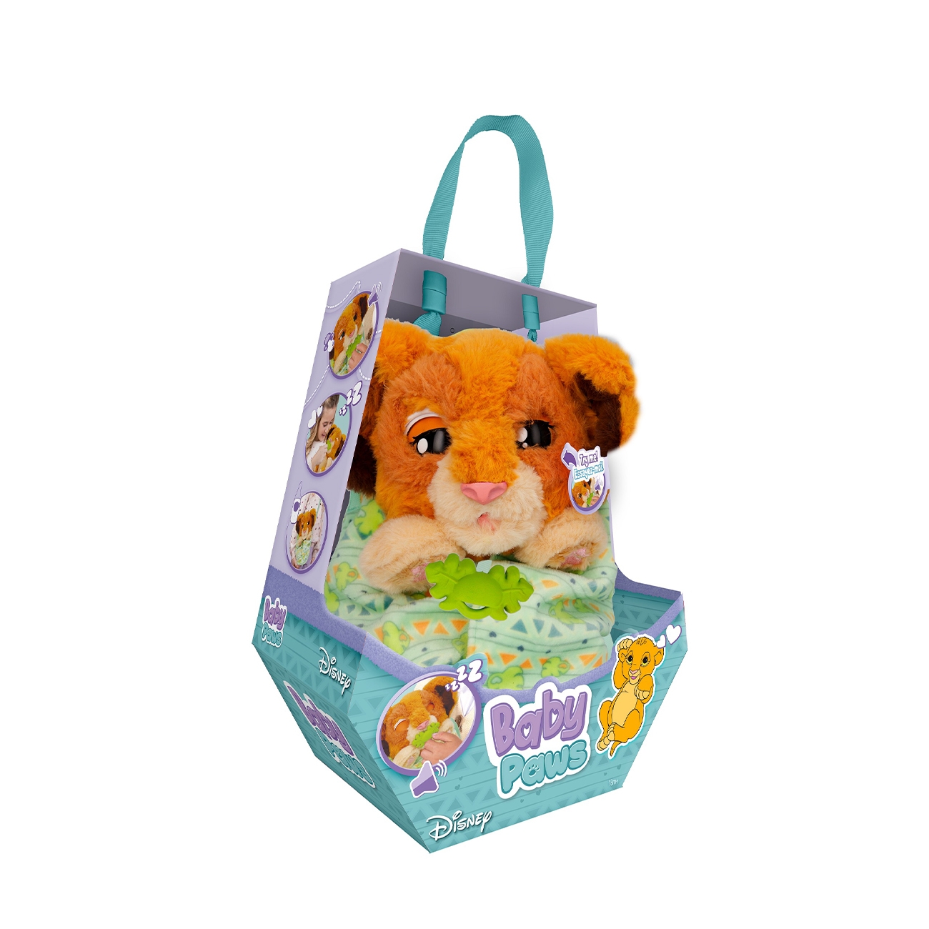 Simpatica jucărie interactivă Baby Paws de la Simba își cucerește micii stăpâni prin blănița moale și expresia adorabilă. Așezat într-un săculeț decorat cu motive vesele, acest cățeluș pufos reacționează la atingeri, oferind o experiență de joacă afectuoasă și interactivă.