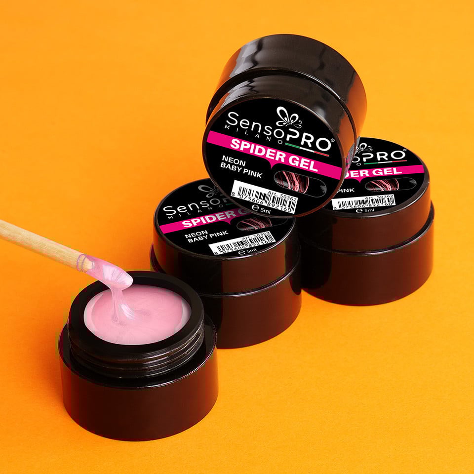 Spider Gel SensoPRO Neon Baby-Pink, 5 ml este produsul ideal pentru un nail art rapid si de efect. Textura vascoasa si elastica a gelului permite trasarea liniilor fine si drepte, de mare precizie. Culorile puternic pigmentate si cu grad mare de acoperire sunt perfecte pentru orice tip de manichiura si pedichiura. Datorita ingredientelor de mare calitate din care este realizat, gelul spider rezista pe unghii pana la 4 saptamani. Mod de aplicare: 1. Curata unghia si pregateste-o prin aplicarea primer-ului/gelului UV de constructie; 2. Aplica oja/Gelul UV colorat pe unghii si polimerizeaza; 3. Creeaza modelul cu Spider Gel SensoPRO si polimerizeaza; 4. Sigileaza manichiura la sfarsit cu un TopCoat.