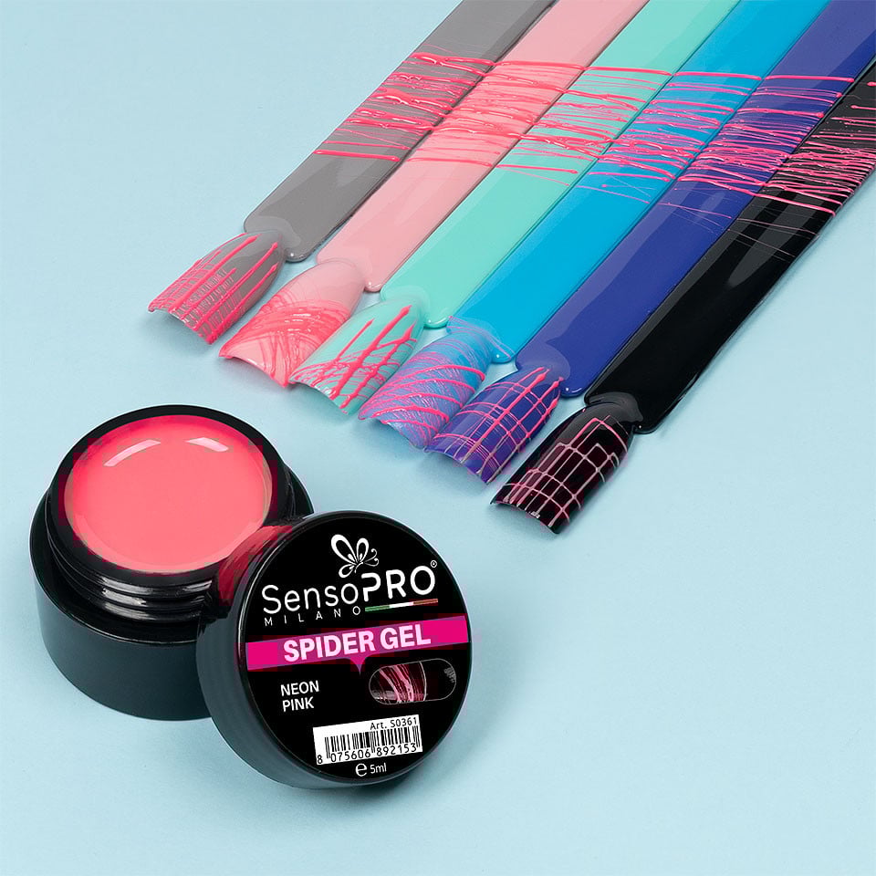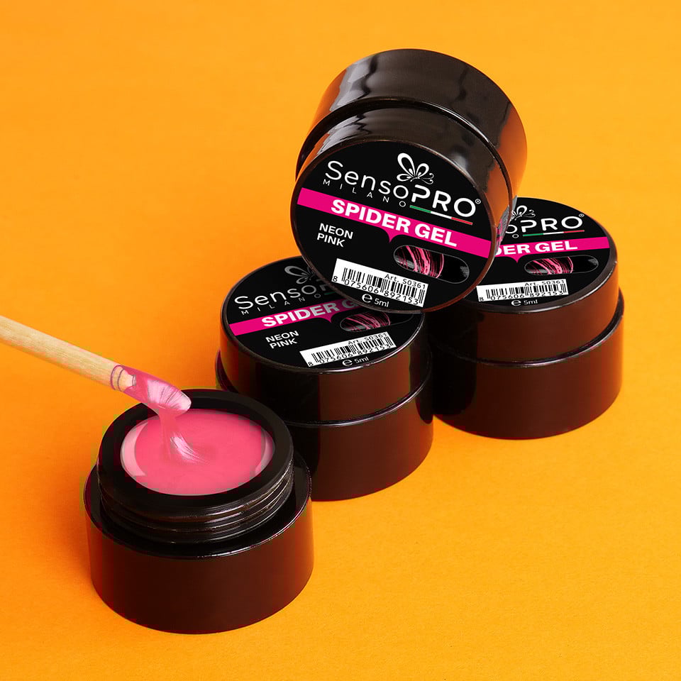 Spider Gel SensoPRO Neon Pink, 5 ml este produsul ideal pentru un nail art rapid si de efect. Textura vascoasa si elastica a gelului permite trasarea liniilor fine si drepte, de mare precizie. Culorile puternic pigmentate si cu grad mare de acoperire sunt perfecte pentru orice tip de manichiura si pedichiura. Datorita ingredientelor de mare calitate din care este realizat, gelul spider rezista pe unghii pana la 4 saptamani. Mod de aplicare: 1. Curata unghia si pregateste-o prin aplicarea primer-ului/gelului UV de constructie; 2. Aplica oja/Gelul UV colorat pe unghii si polimerizeaza; 3. Creeaza modelul cu Spider Gel SensoPRO si polimerizeaza; 4. Sigileaza manichiura la sfarsit cu un TopCoat.