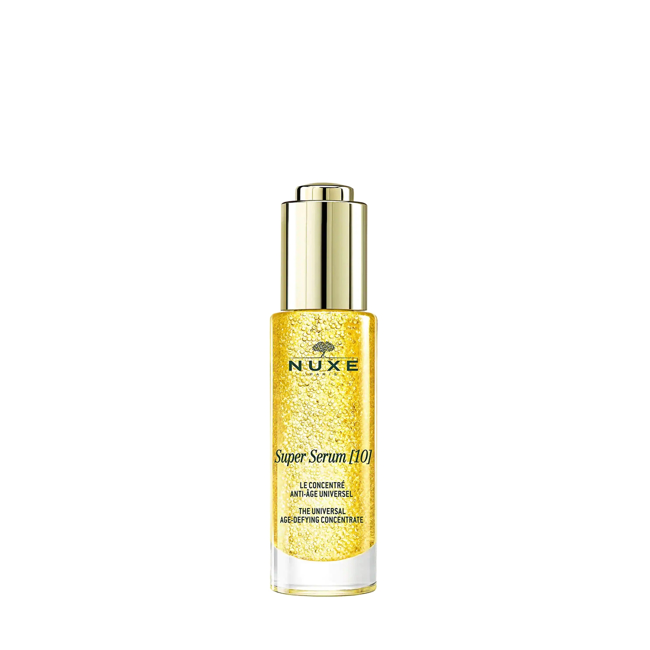 Serumul Nuxe Super Serum [10] este un concentrat anti-îmbătrânire universal ce stimulează regenerarea celulară, netezește liniile fine și îmbunătățește textura pielii. Formula sa inovatoare combină acid hialuronic natural și uleiuri botanice microîncapsulate, oferind hidratare intensă și un aspect vizibil întinerit al tenului.