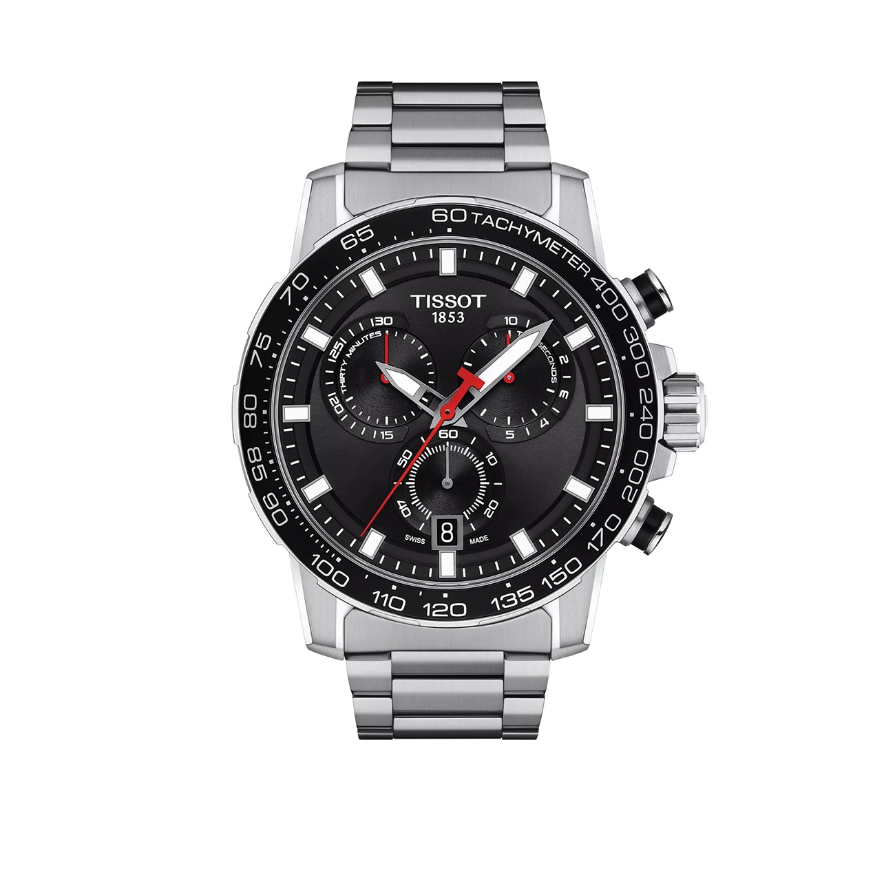 Tissot este un brand ce produce o gamă largă de ceasuri de lux, de la cele mecanice, până la ceasuri sport cu tehnologii avansate cu mecanism quartz și cu sensibilitate la atingere. În 1880, brandul și-a înregistrat primul logo, ca urmare a intrării în vigoare a primului Act Elvețian de Protecție a Mărcilor. În timp, a avut numeroase modificări, în urma evoluției mărcii. Supersport Chrono este o colecție masculină, dinamică și futuristă, care se remarcă prin diversitatea modelelor, oferind fiecărei persoane posibilitatea de a alege ce ceas se potrivește cel mai bine pe încheietura lor. Cu o lățime de 45,50 mm, acest ceas are o formă rotundă a carcasei, realizată din oțel inoxidabil 316L, iar inelul bezel este din aluminiu. Rezistența la apă este de până la 10 bar, ceea ce îl face potrivit pentru activități sub apă. Cristalul din safir este rezistent la zgârieturi, asigurând o durabilitate pe termen lung și o claritate excelentă.