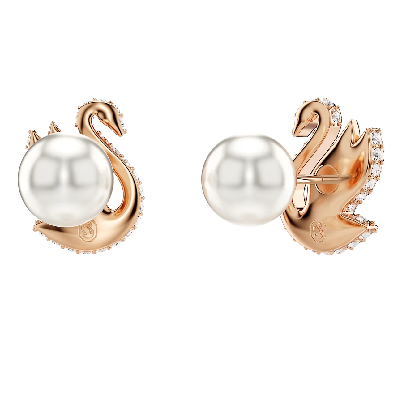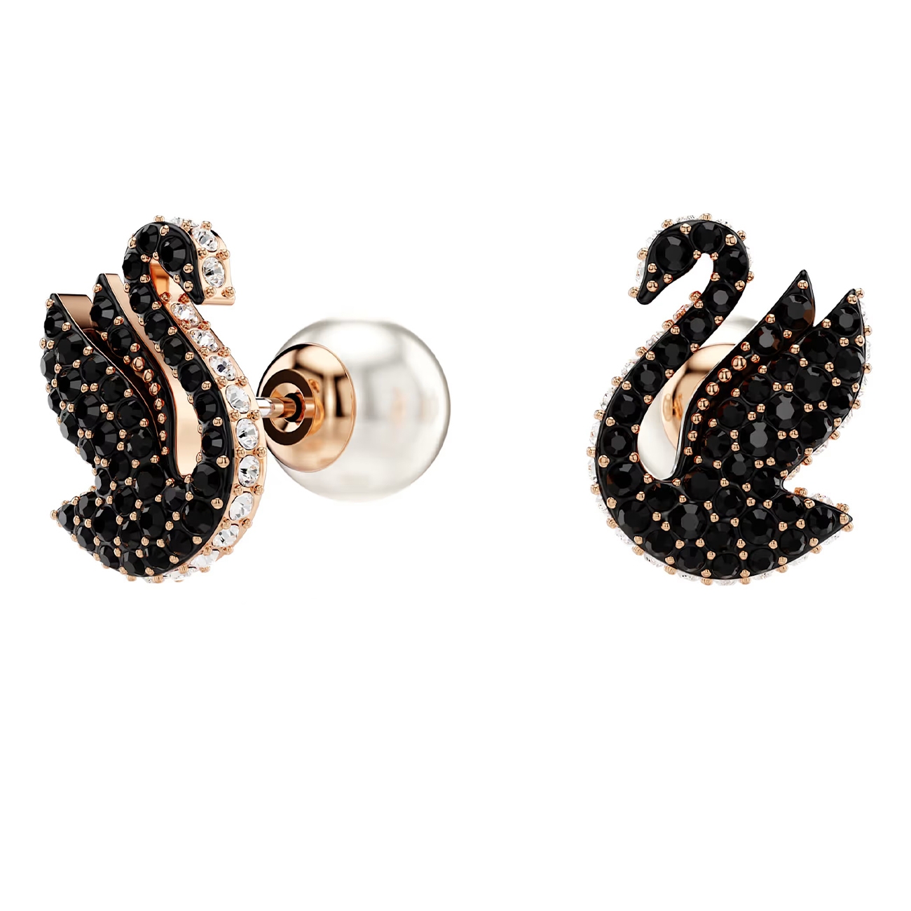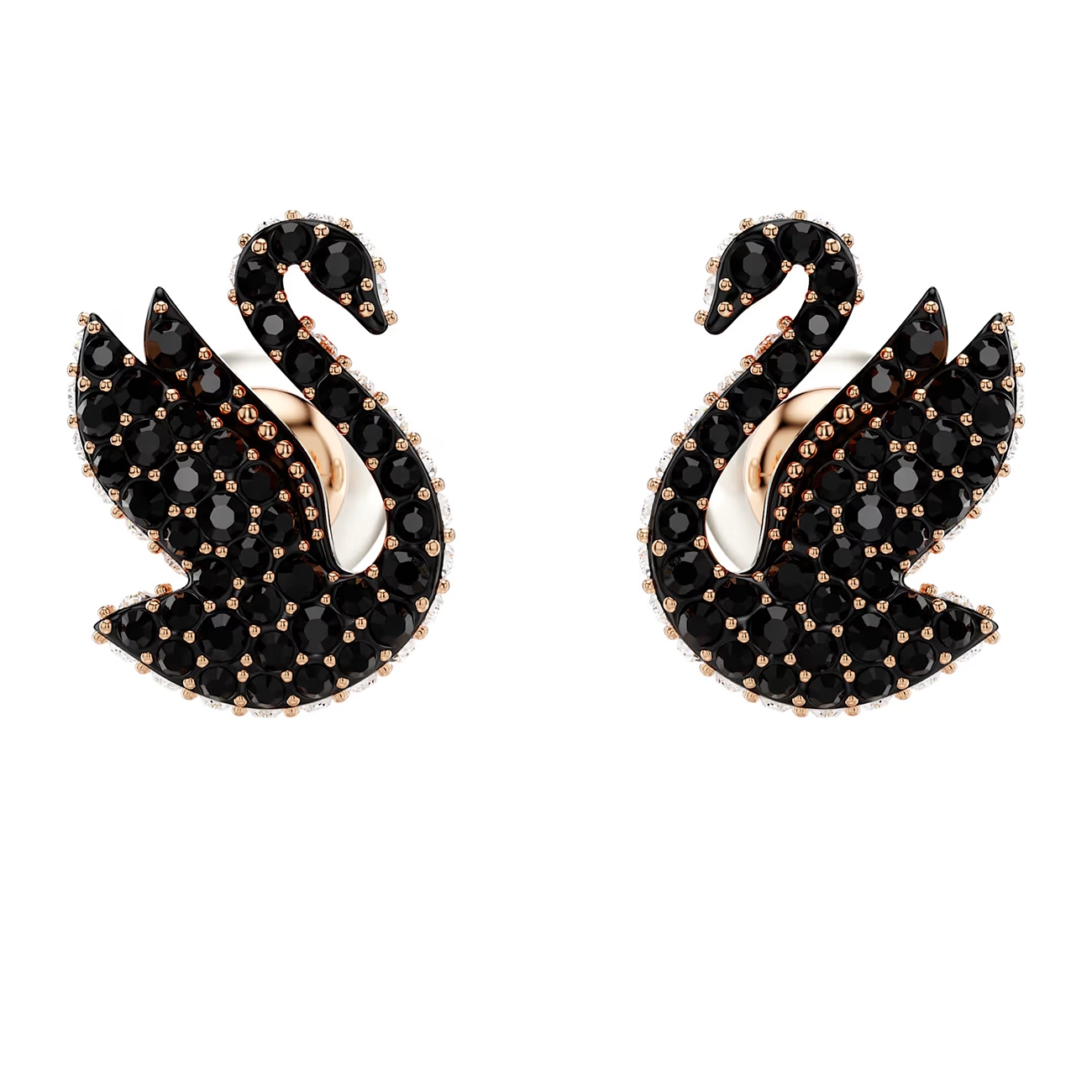 Swarovski este o afacere de familie ce a pornit din dorința de a crea un cristal pentru toată lumea. Din 1891 până astăzi ei continuă să creeze piese unice, delicate și elegante pentru femeile din toată lumea. Inspirați de emblematica lebădă Swarovski, acești cercei eleganți aduc un strop de rafinament și sofisticare oricărei ținute. Fiecare piesă, placată cu aur roz, prezintă un închizător decorat cu un Cristal Perlă și un motiv în formă de lebădă, realizat cu măiestrie din pavé de cristale Swarovski ReCreated™ negre.