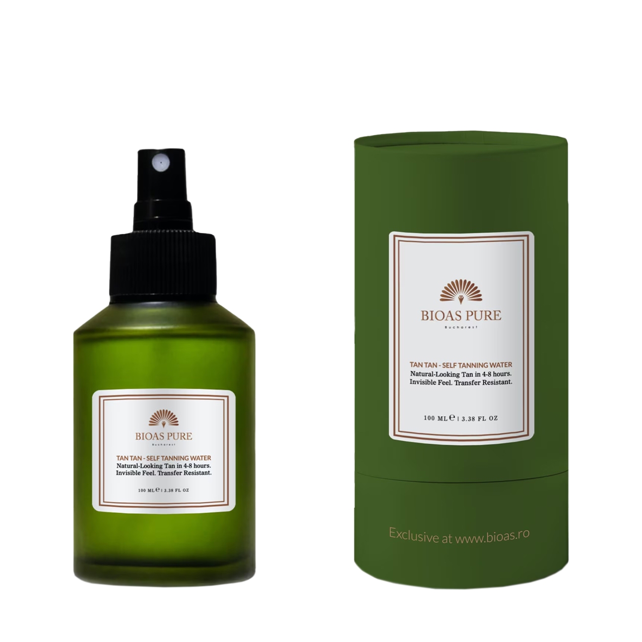 Brandul Bioas Pure, fondat de Anca Serea și Adrian Sînă, este dedicat produselor cosmetice 100% organice, create în colaborare cu un producător italian care deține culturi de aloe vera organică și măslini. Colecția lor include produse anti-aging și hidratante, ideale chiar și pentru tenurile sensibile sau cu probleme, dar și produse pentru îngrijirea părului Tan Tan Self Tanning Water este soluția ideală pentru un bronz natural și uniform, oferind pielii un aspect radiant. Formula sa ușoară, cu uscare rapidă, asigură o aplicare fără efort, dezvoltând o culoare superbă de vară în doar 4-6 ore, în timp ce ajută la reducerea liniilor fine și a ridurilor. Îmbogățită cu ulei de cocos, semințe de chia și avocado, această apă de bronzare hrănește și hidratează pielea, menținându-i suplețea și uniformitatea. Complexul SuperBalance corectează nuanța pielii, oferind un bronz cât mai natural posibil.