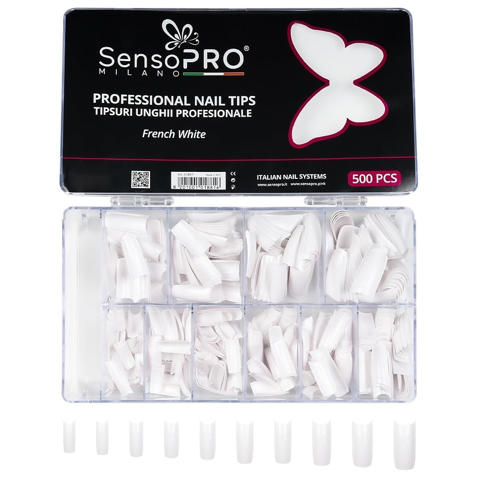 Tipsuri Unghii False SensoPRO Milano French White, 500 buc, Accesorii Unghii