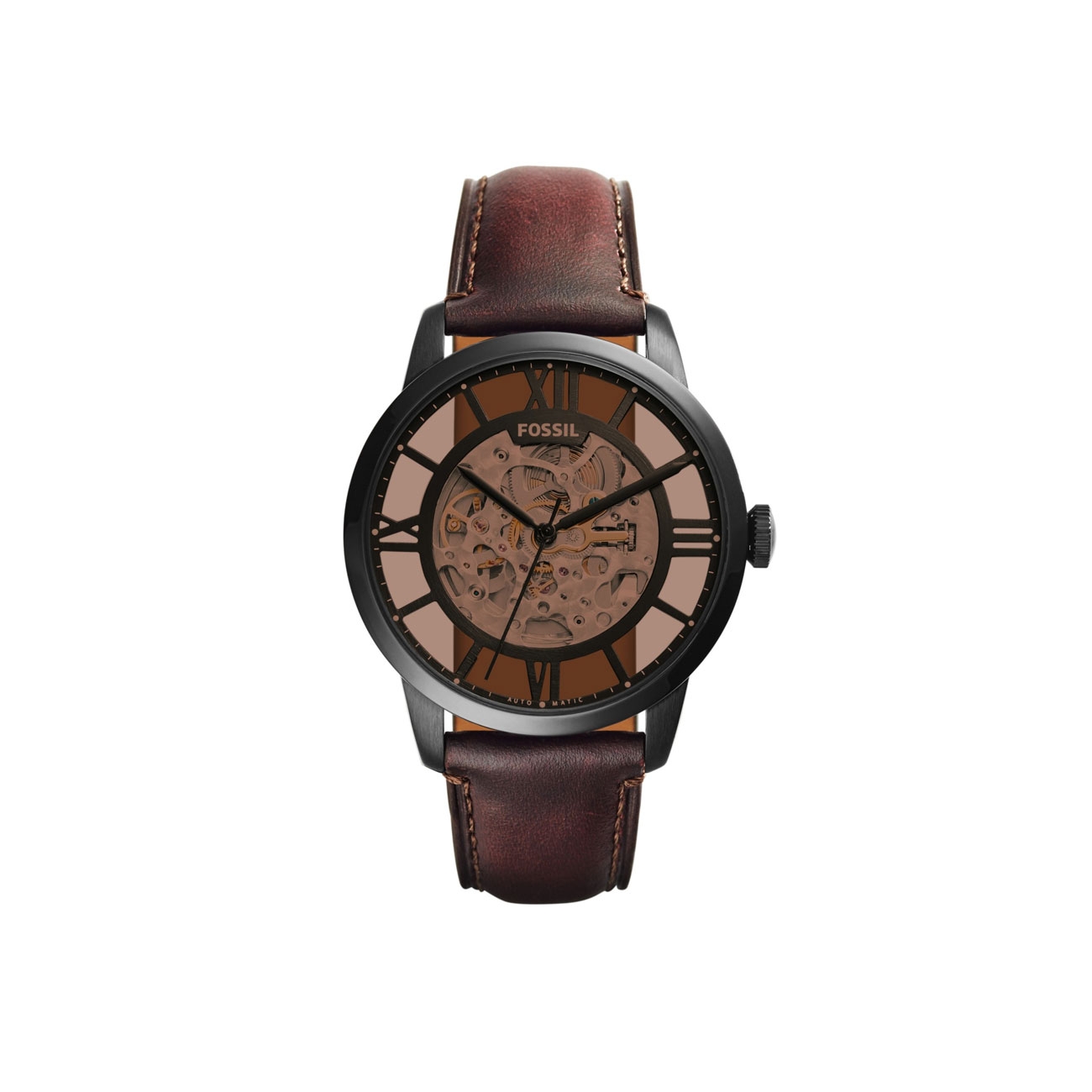 Fossil este un brand cunoscut pentru producerea și distribuirea de ceasuri la modă și de înaltă calitate în întreaga lume. Brand-ul își pune amprenta asupra bijuteriilor și ceasurilor create prin calitate, stil și creativitate. Un ceas automatic modern, al cărui design are accente vintage, Fossil ME3098 din colecția Townsman îmbină perfect aspectul distinctiv cu performanța. Carcasa este realizată din oțel inoxidabil, brățara din piele naturală de culoare maro, iar cadranul transparent prezintă cifre romane supradimensionate și o vedere fabuloasa către mecanism.