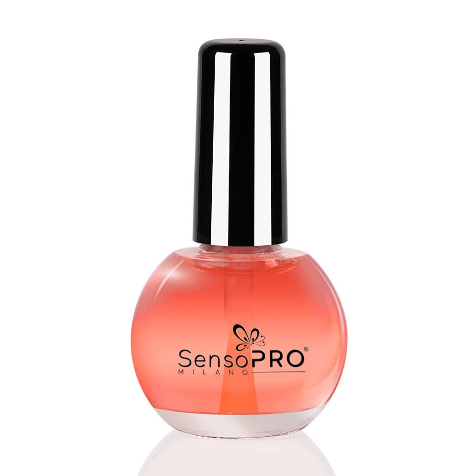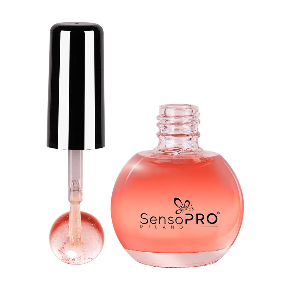 Intr-o sticla eleganta Uleiul Cuticule cu Pensula Strawberry SensoPRO, 15 ml este cel mai bun tratament pentru ingrijirea cuticulelor. Uleiul poate fi folosit zilnic ca si tratament pentru prevenirea uscarii cuticulelor dar si dupa procesul de realizare a manichiurii pentru hidratare si ingrijire a cuticulelor. Avantaje Ulei cuticule: - Aroma delicata de capsuni - Hidrateaza cuticulele si combate uscarea lor - Protejeaza, calmeaza si catifeleaza.