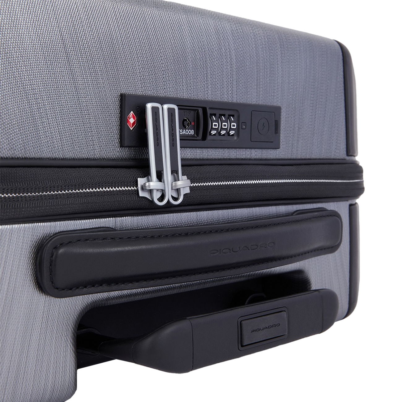 Troller de cabină Piquadro realizat din combinație de piele de înaltă calitate și policarbonat rezistent, având un design elegant și funcțional, cu 4 roți pivotante pentru manevrare facilă, mâner telescopic ergonomic și compartiment principal spațios, ideal pentru călătorii scurte.
