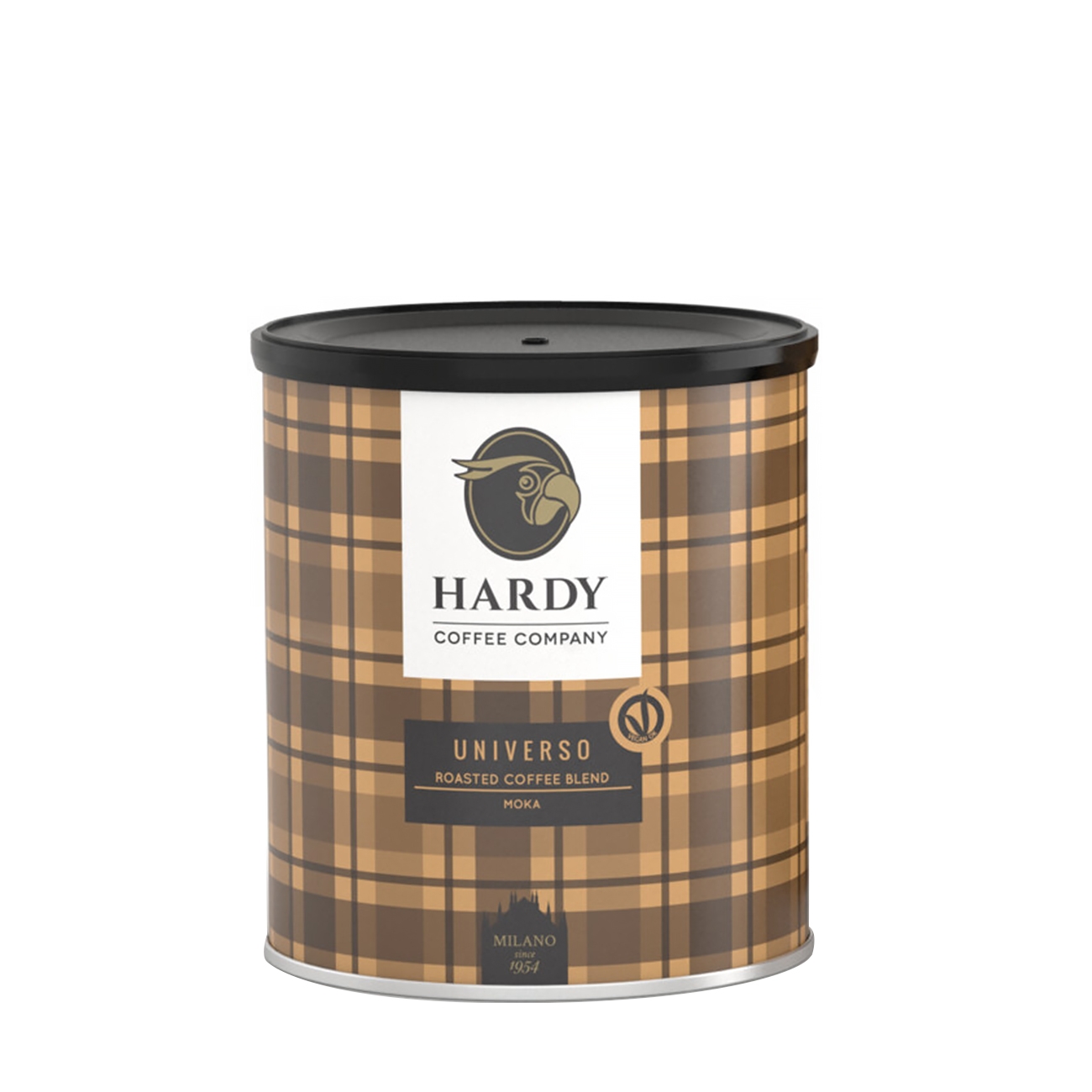 Hardy Milano își dorește să ofere întregii lumi posibilitatea de a gusta din cafeaua din Milano, o cafea senzațională, perfectă pentru a fi savurată în momente pline de iubire și fericire. Universo este o cafea măcinată intensă cu arome perfect balansate și un miros plăcut de tutun și piele, cu o urmă de condimente.