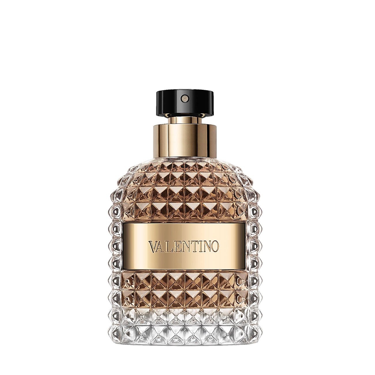 Lumea barbatului Valentino ne conduce in orasul celor sapte coline. Roma este locul rafinat in care eleganta innascuta devine un stil de viata. Autenticitatea defineste eleganta barbatului Valentino. Valentino Uomo este invaluit de eleganta usoara a bergamotei spumante si suprinde cu o nota de condiment. O atingere de mirt este urmata de preludiul cu note clasice de cafea si tonuri ale cremei de Gianduja. O nota invaluitoare, moscata, de piele alba si lemn usor afumat emana senzualitate. Sticla prezinta designul iconic Valentino Rockstud: inspirat din arhitectura romana, aceasta forma piramidala transforma stilul clasic al sticlei intr-unul modern. Aplica de la o distanta mica asupra zonelor de puls.