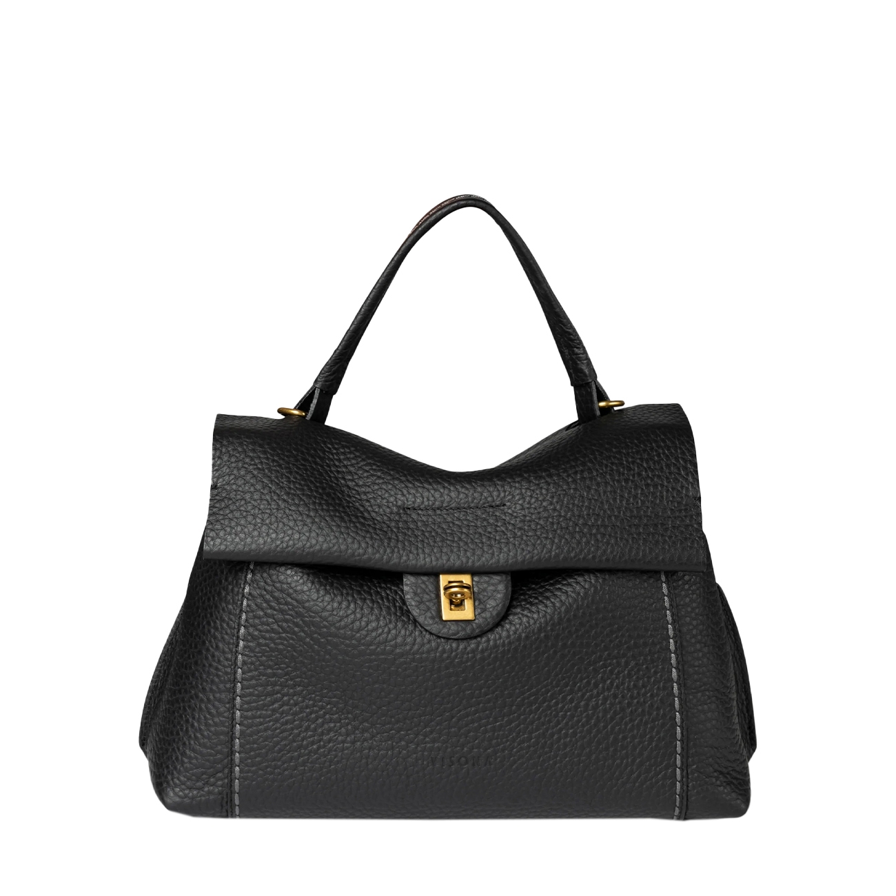 Geanta Viola de la Visonà reinterpretează rafinamentul clasic printr-o siluetă elegantă, pusă în valoare de textura naturală a pielii și de cusăturile contrastante. Închiderea metalică subtilă și mânerul scurt îi conferă un aer sofisticat, fiind alegerea ideală pentru un look atemporal și feminin.