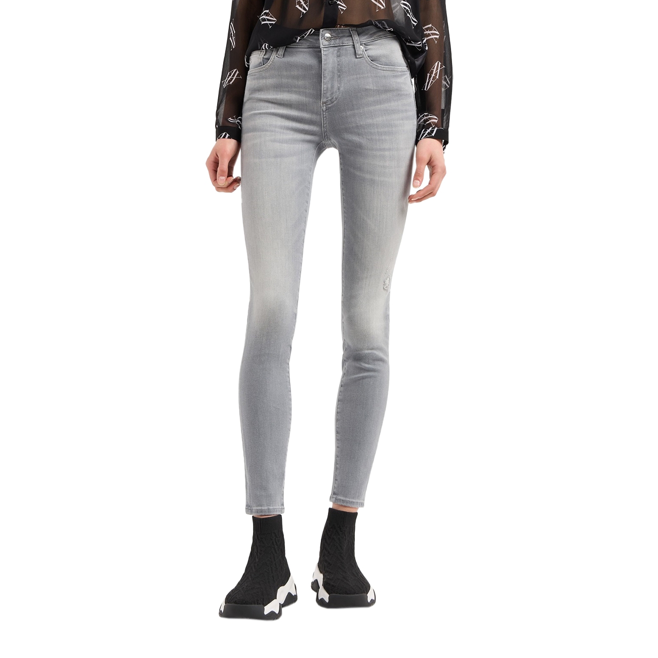 Pantalonii pentru femei de la Armani Exchange, în nuanța gri denim, sunt o piesă versatilă și modernă, perfectă pentru orice garderobă casual. Confecționați din bumbac de calitate, cu o croială skinny care evidențiază silueta, acești pantaloni sunt confortabili și elastici, permițând libertate de mișcare.